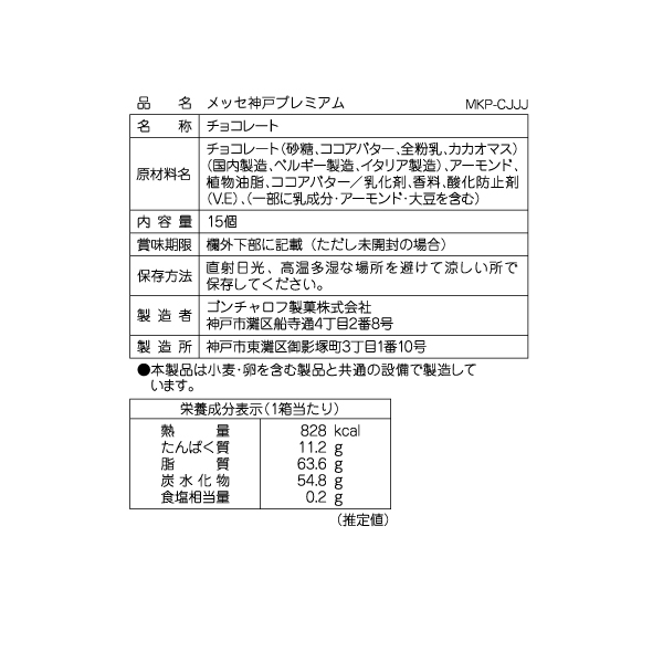 メッセ神戸プレミアム 15個 ゴンチャロフ チョコレート