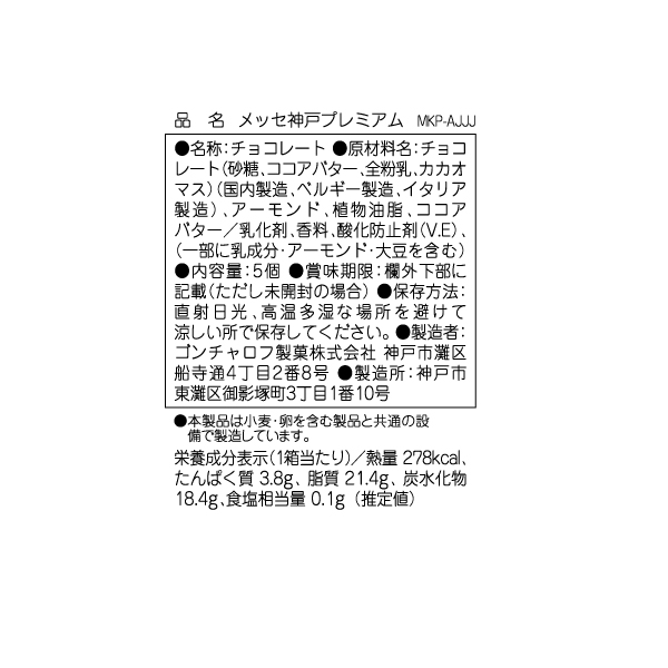 メッセ神戸プレミアム 5個 ゴンチャロフ チョコレート