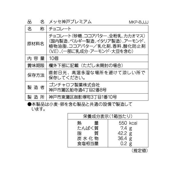 メッセ神戸プレミアム 10個 ゴンチャロフ チョコレート