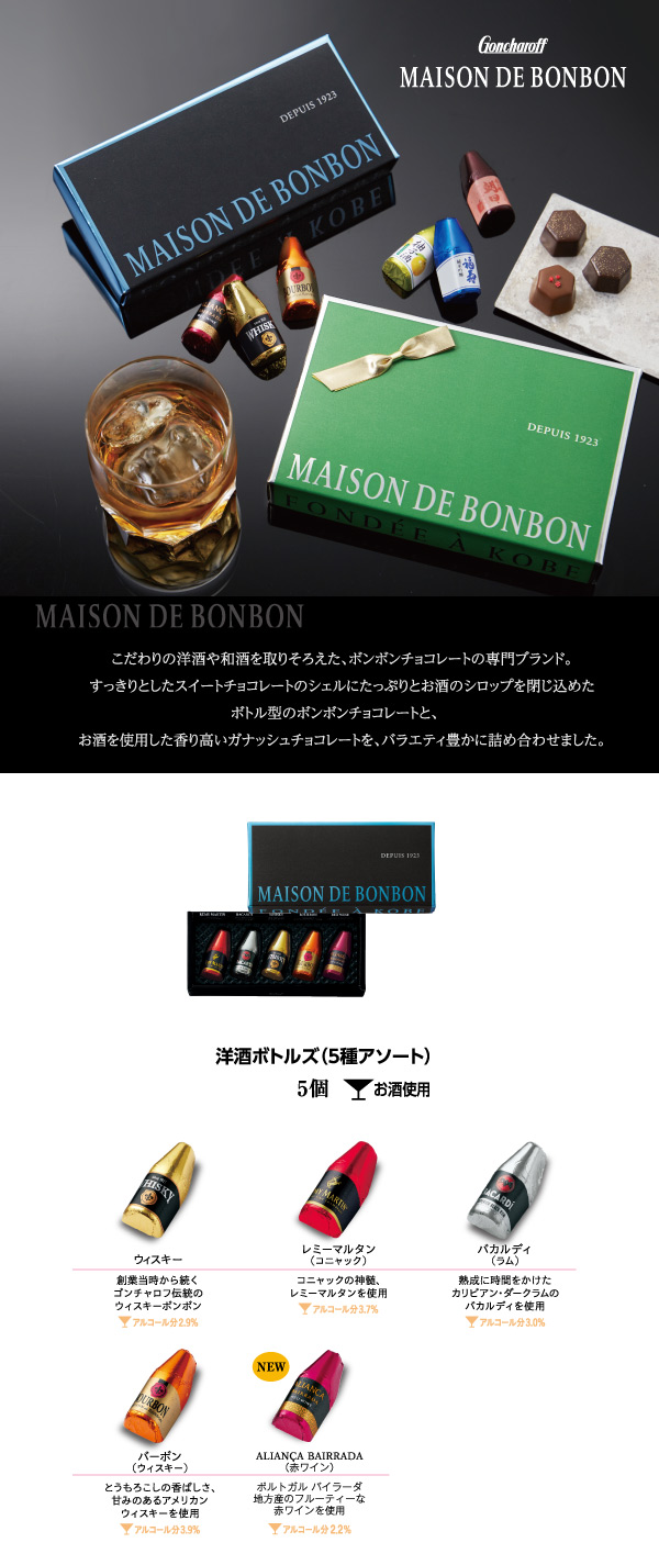 401 洋酒ボトルズ(5種アソート) 5個 ゴンチャロフ メゾンドボンボン バレンタイン2026 チョコレート お酒チョコ